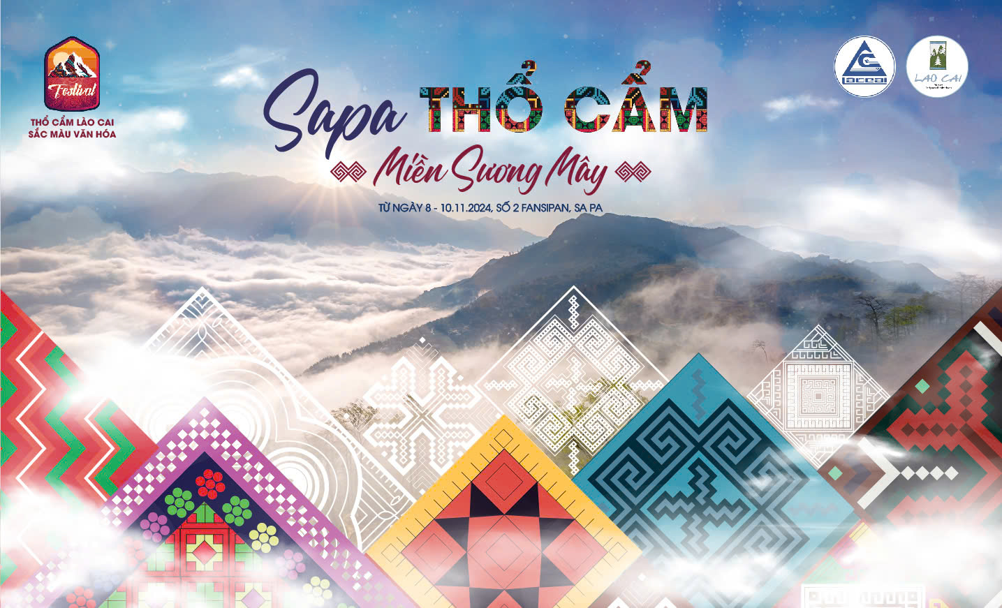 Festival “Thổ cẩm Lào Cai – Sắc màu văn hóa” 2024 với chủ đề “Sa Pa – thổ cẩm miền sương mây” sẽ diễn ra từ ngày 08/11/2024 đến ngày 10/11/2024, tại số 2 Fan Si Pan, Thị xã Sa Pa, tỉnh Lào Cai. Chương trình có những hoạt động hấp dẫn sau: