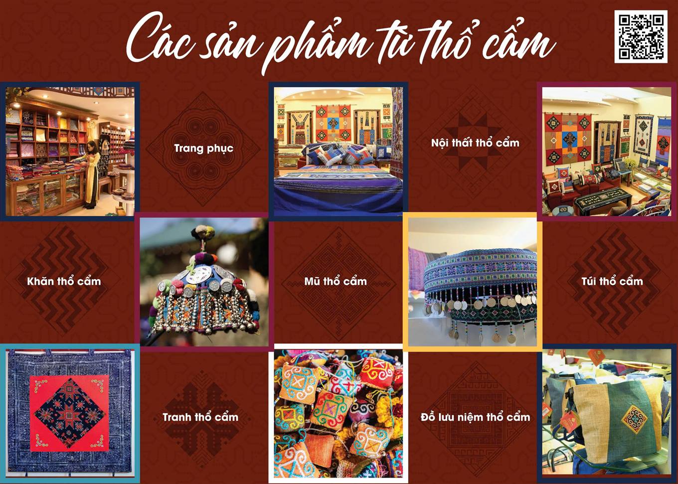 Bằng các thiết kế phương án trưng bày, sắp đặt nghệ thuật giới thiệu văn hóa và thổ cẩm ứng dụng, du khách sẽ được hòa mình vào không gian văn hóa nghệ thuật sắp đặt “Sa Pa – miền sương mây”, tìm hiểu các sản phẩm được làm từ thổ cẩm như trang phục, túi xách, gối…. Thông qua cách sắp đặt nghệ thuật đặc biệt, mới lạ sẽ đem đến một thế giới thổ cẩm ấn tượng, với những sắc màu rực rỡ. Không gian này mở cửa phục vụ khách tham quan du lịch lâu dài tại Trung tâm Thông tin và Xúc tiến Du lịch (tại Sa Pa).